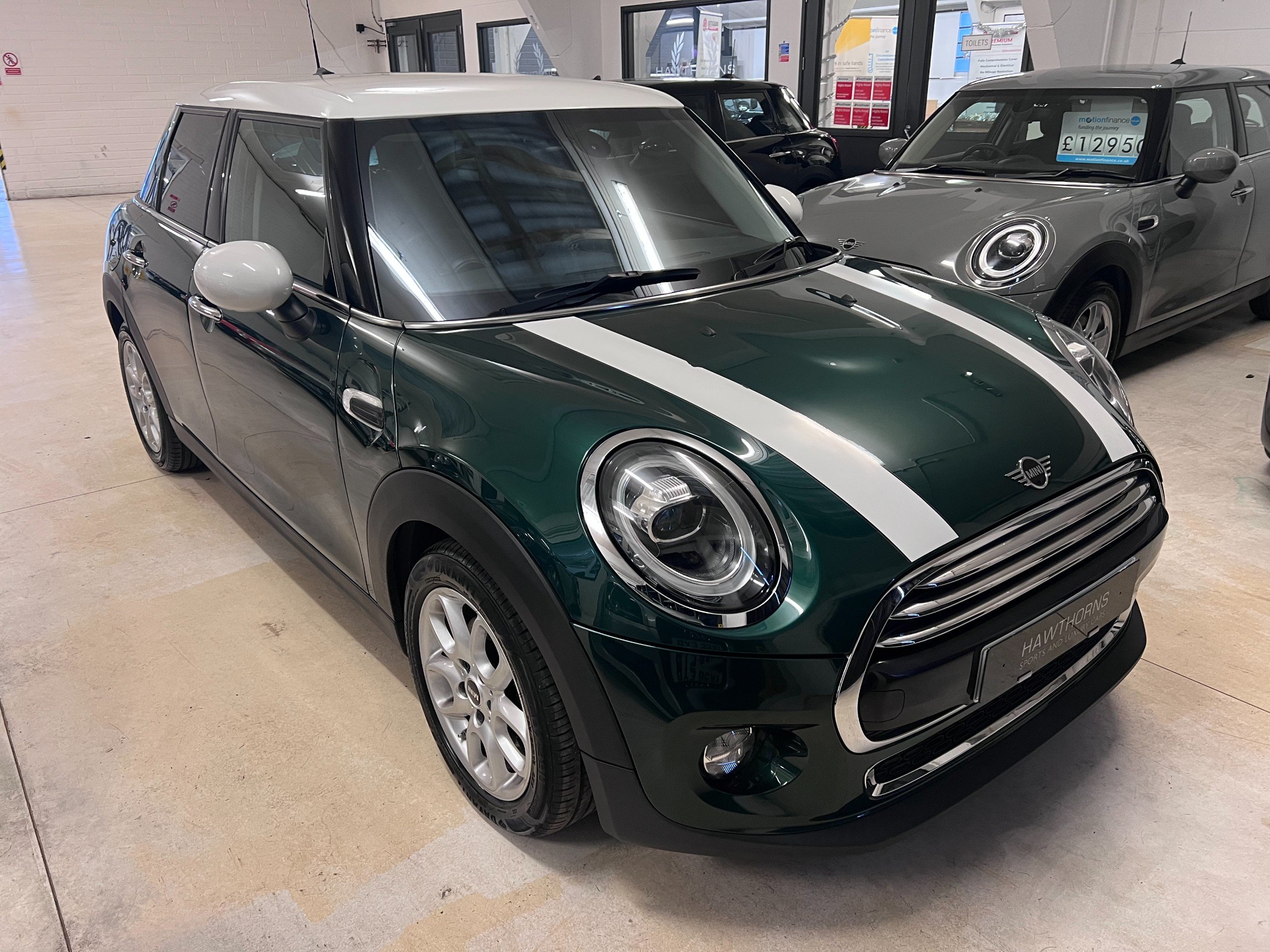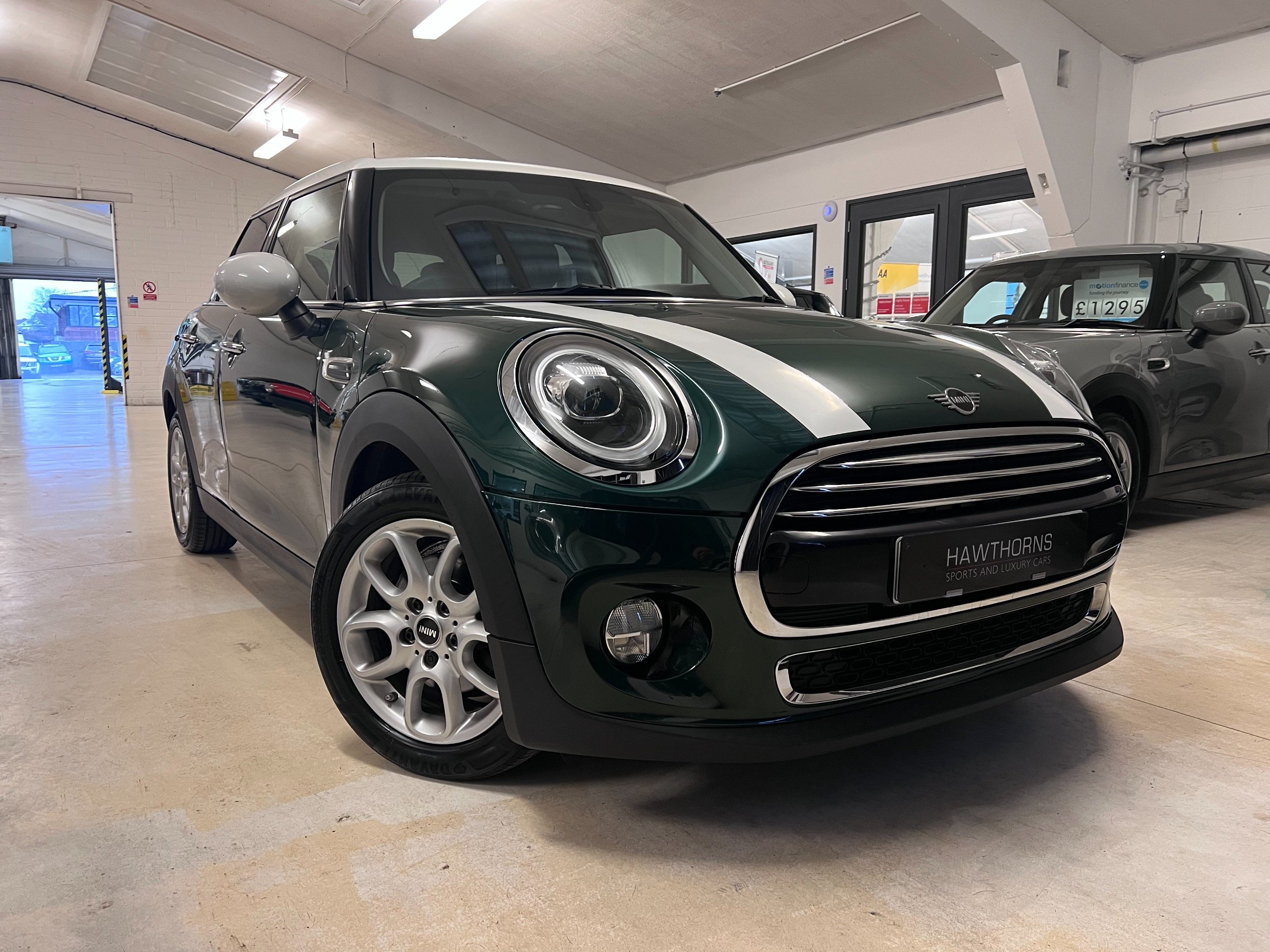 Excellent example. Finished in British Racing Green with Carbon Black Firework cloth interior. Mini service history, 2 x keys. Options include Climate Control, Cruise Control With Brake Function, Sports Leather Multi Function Steering Wheel, Excitement Package, Dimming Interior Mirror, Light Package, LED Lights, White Roof & Mirror Caps, Loop Spoke Alloys, Rear Park Sensors, 6.5" Touch Screen with DAB & Bluetooth.