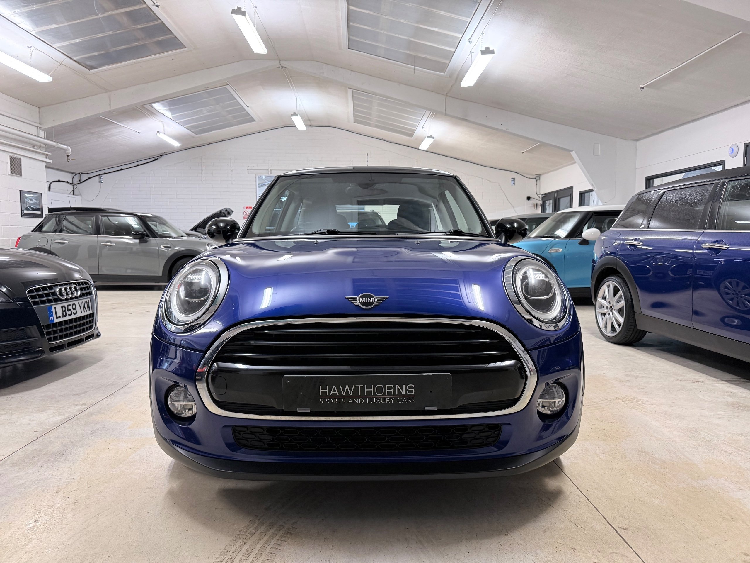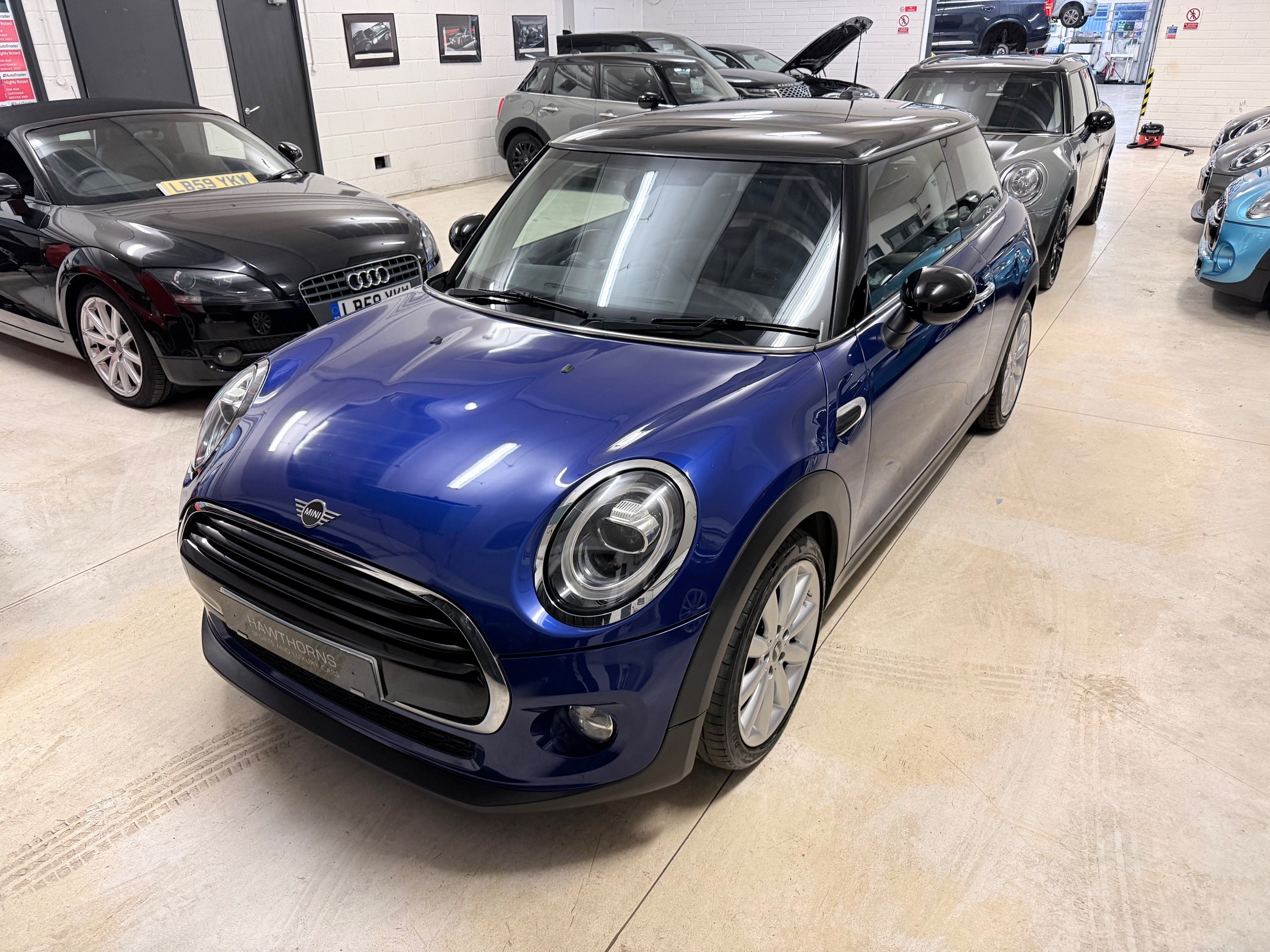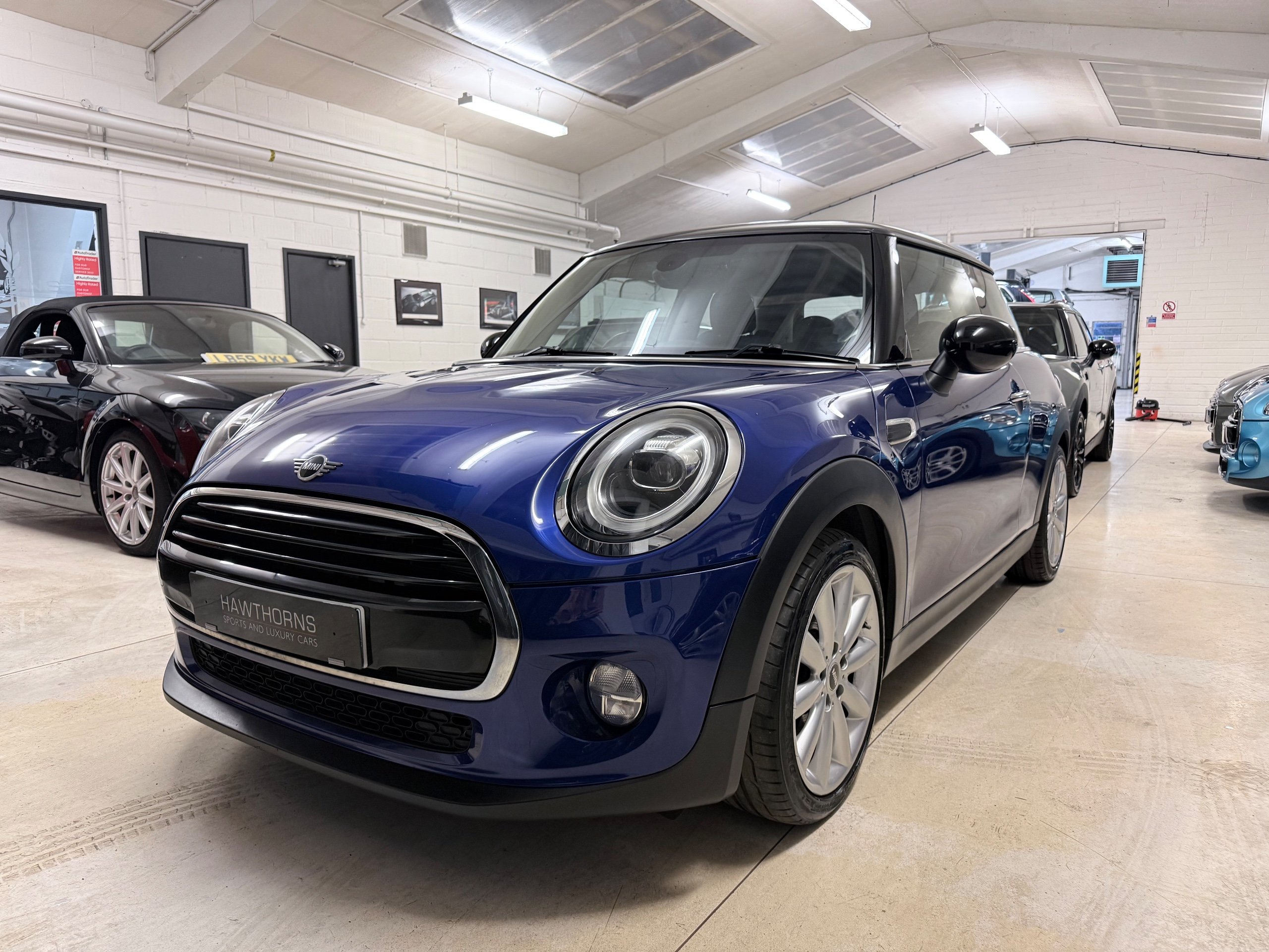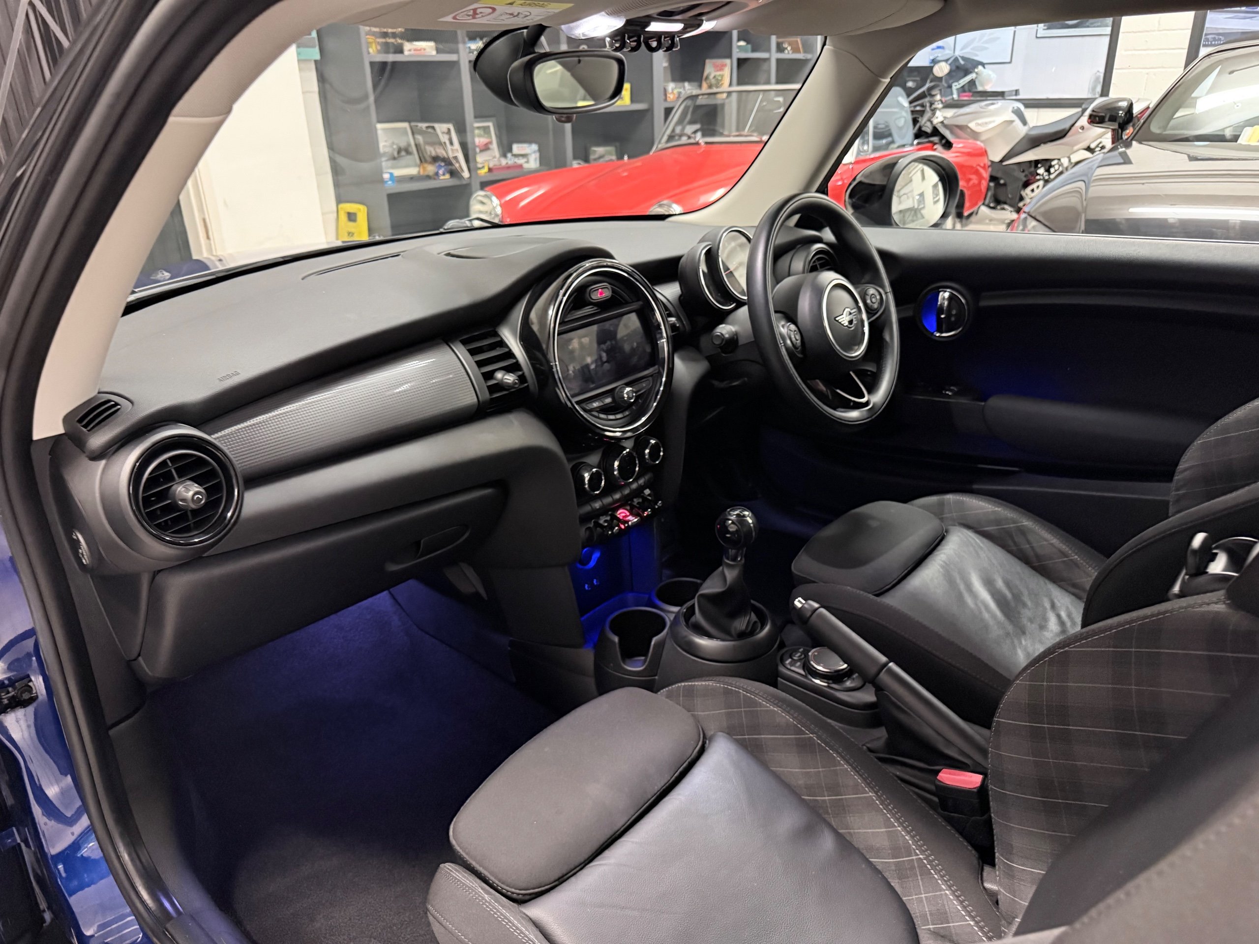 Exceptional example. Finished in Starlight Blue with Carbon Black Diamond leather cloth interior. Full Mini dealer history with one dealer throughout. Very high specification including;