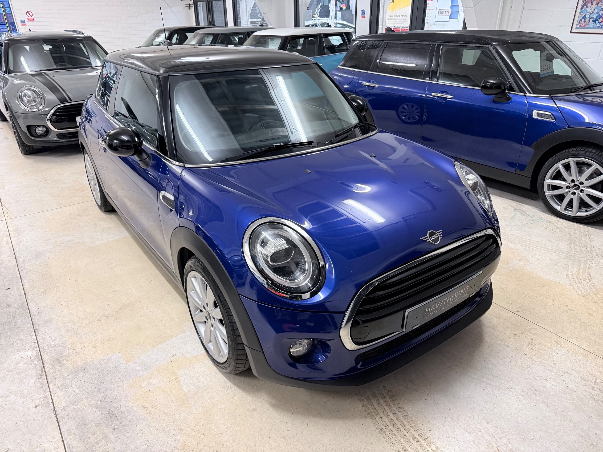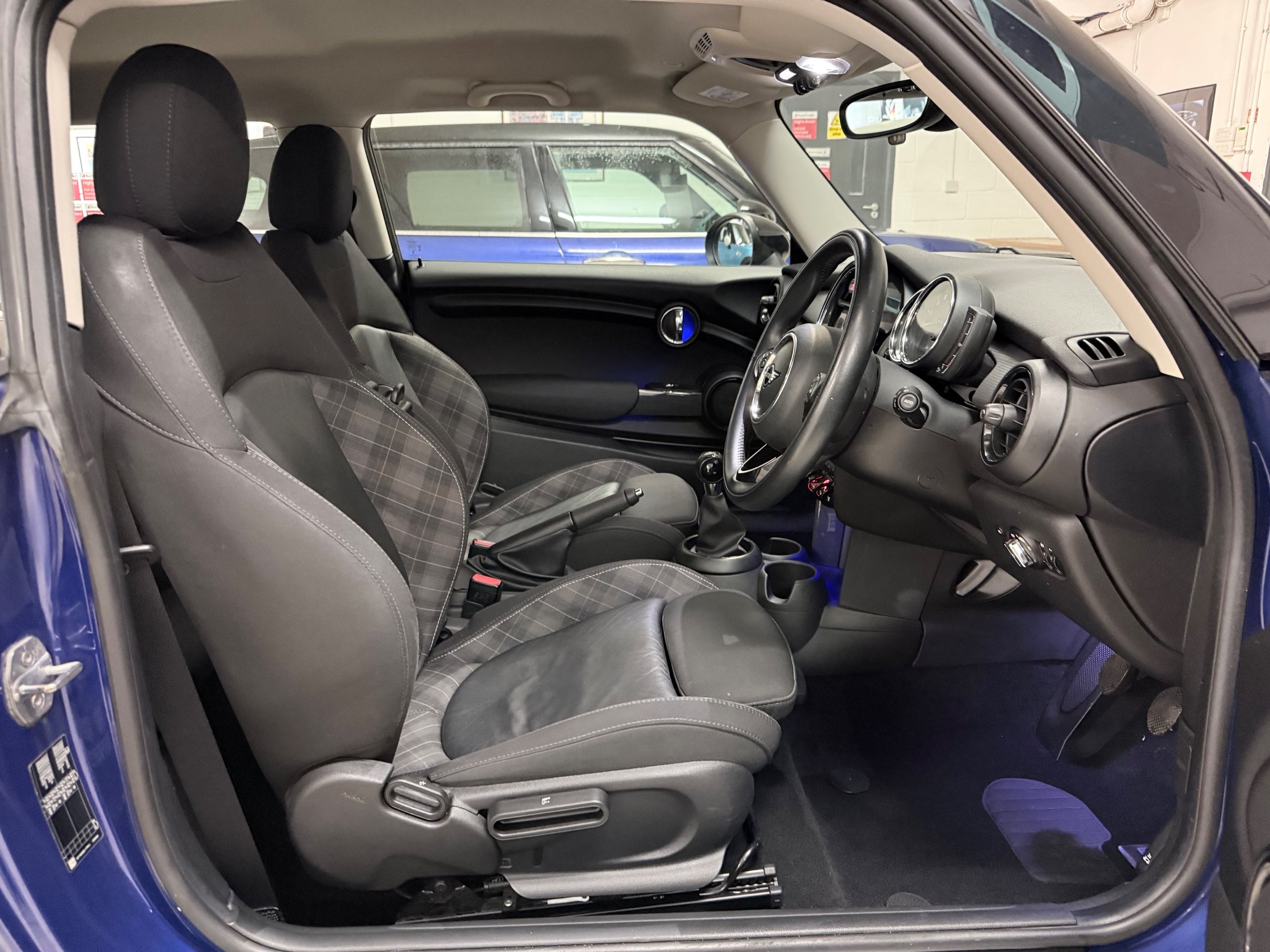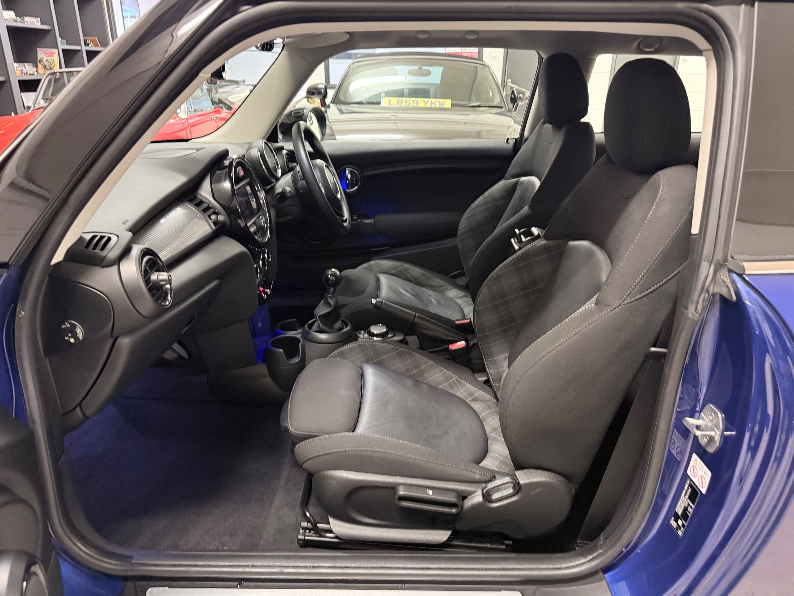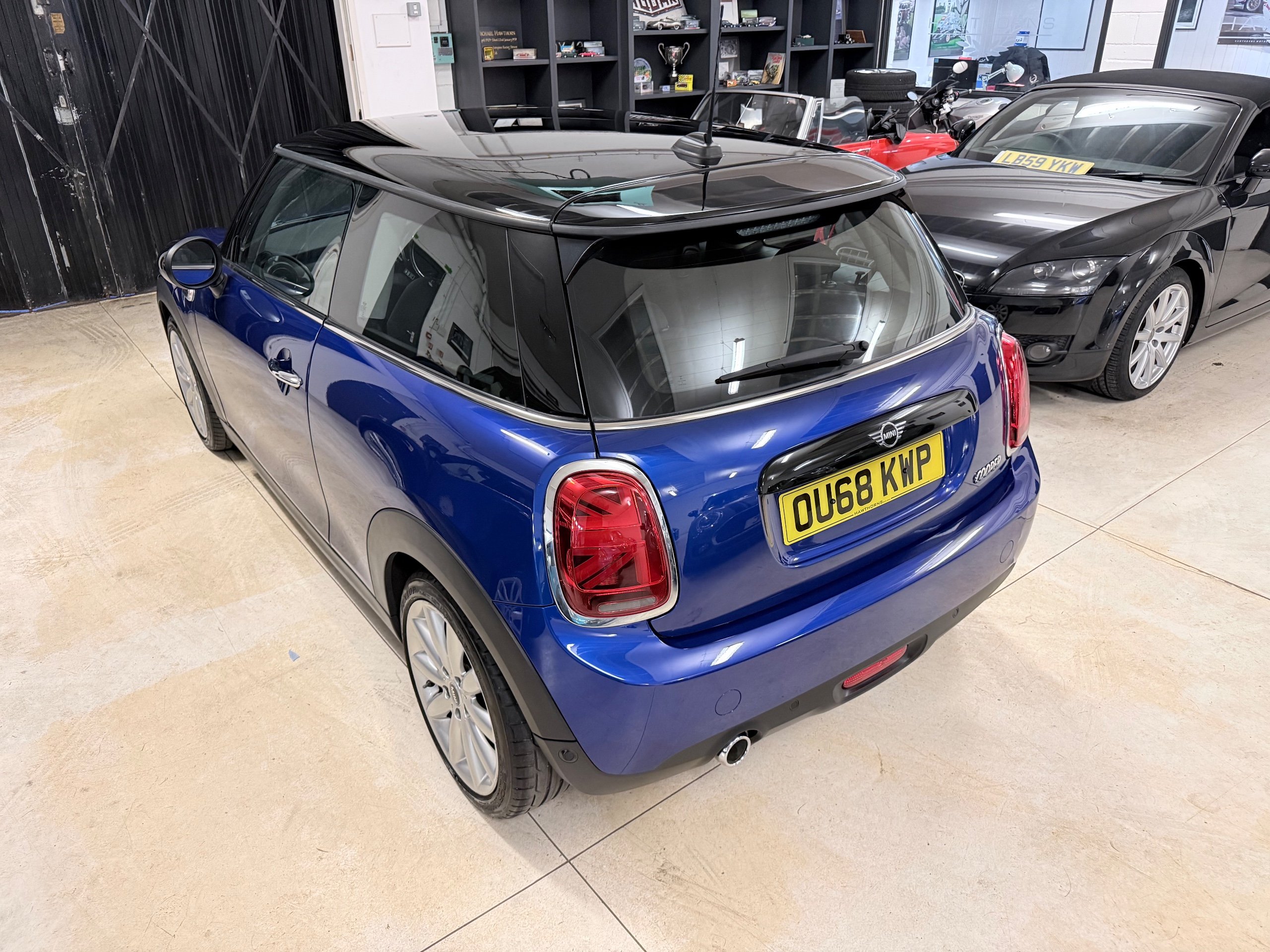 Exceptional example. Finished in Starlight Blue with Carbon Black Diamond leather cloth interior. Full Mini dealer history with one dealer throughout. Very high specification including;