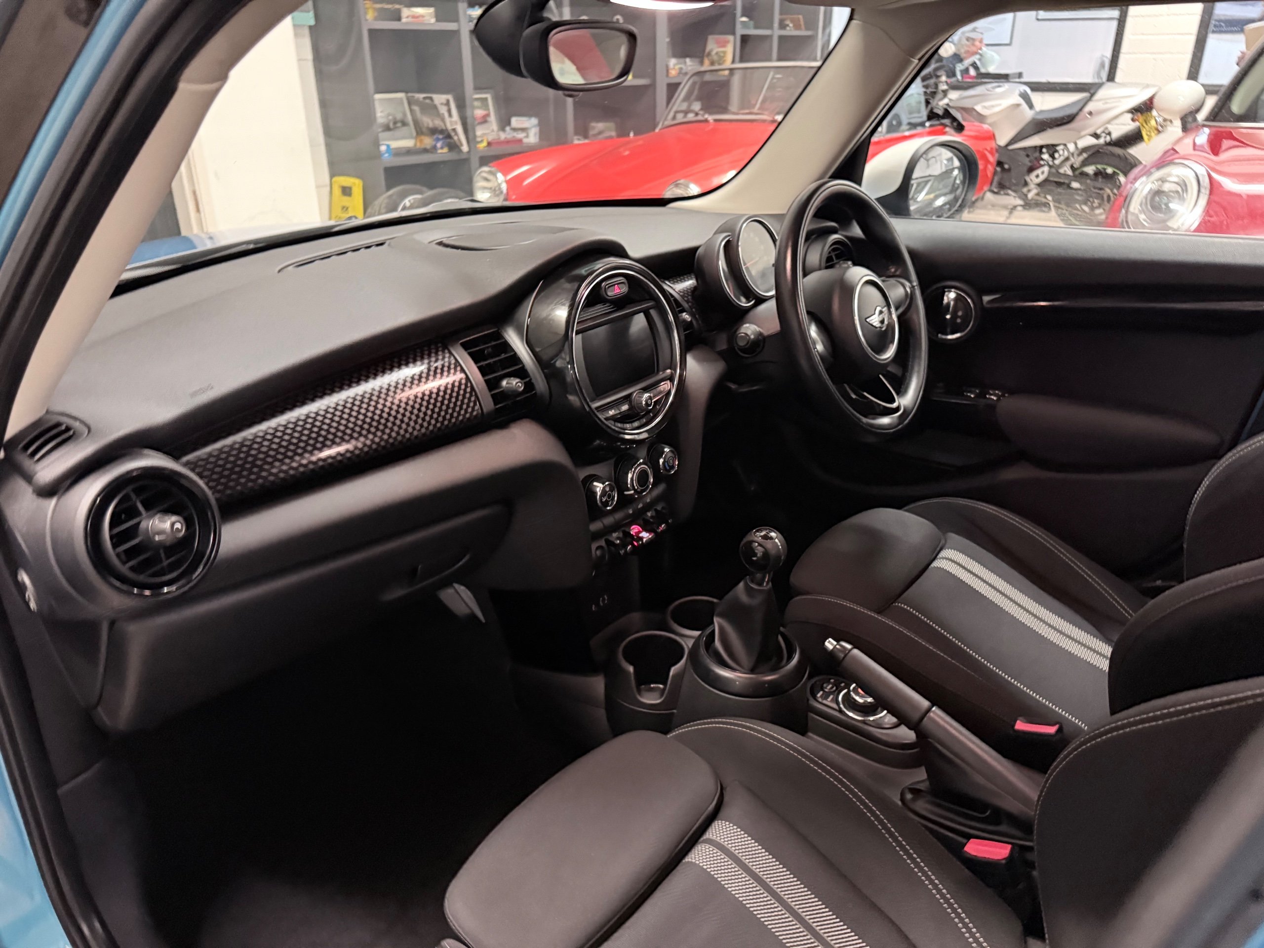 Excellent example. Finished in Electric Blue with Carbon Black Strip Sports interior. Mini & Specialist SH. Options include; Navigation, Mini Connected, Performance Control, OBC, Sports Steering Wheel, Loop Spoke Alloys, White Roof & Mirror Caps, DAB, Mini Visual Boost.